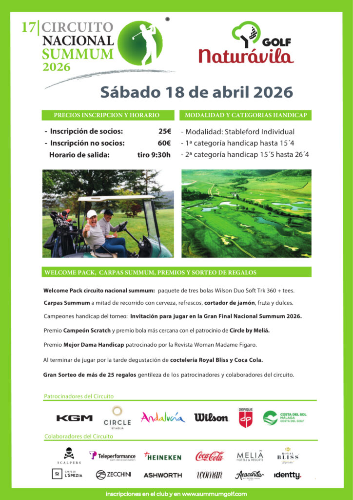 « Todos los Eventos CIRCUITO NACIONAL SUMMUM 2026 abril 18 « TOUR MYGOLF 2026 XI CAMPEONATO REGIONAL DE GOLF DE CASTILLA Y LEÓN 2026 » Añadir al calendario Google Calendar iCalendar Outlook 365 Outlook Live Detalles Fecha: abril 18
