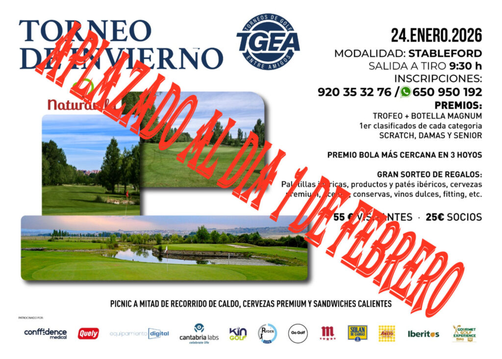 « Todos los Eventos Este evento ha pasado. TORNEO DE INVIERNO TGEA APLAZADO AL DIA 1 DE FEBRERO enero 24 « TORNEO DE GOLF FUNDEEN TORNEO DE INVIERNO TGEA. » Añadir al calendario Google Calendar iCalendar Outlook 365 Outlook Live Detalles Fecha: enero 24